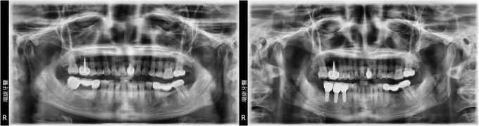 治療計劃: 拔除嚴重牙周病之牙齒,等待三個月癒合期, 安排精密3D電腦斷層評估後,進行人工植牙, 三個月後接出假牙基座印模製作正式假牙!